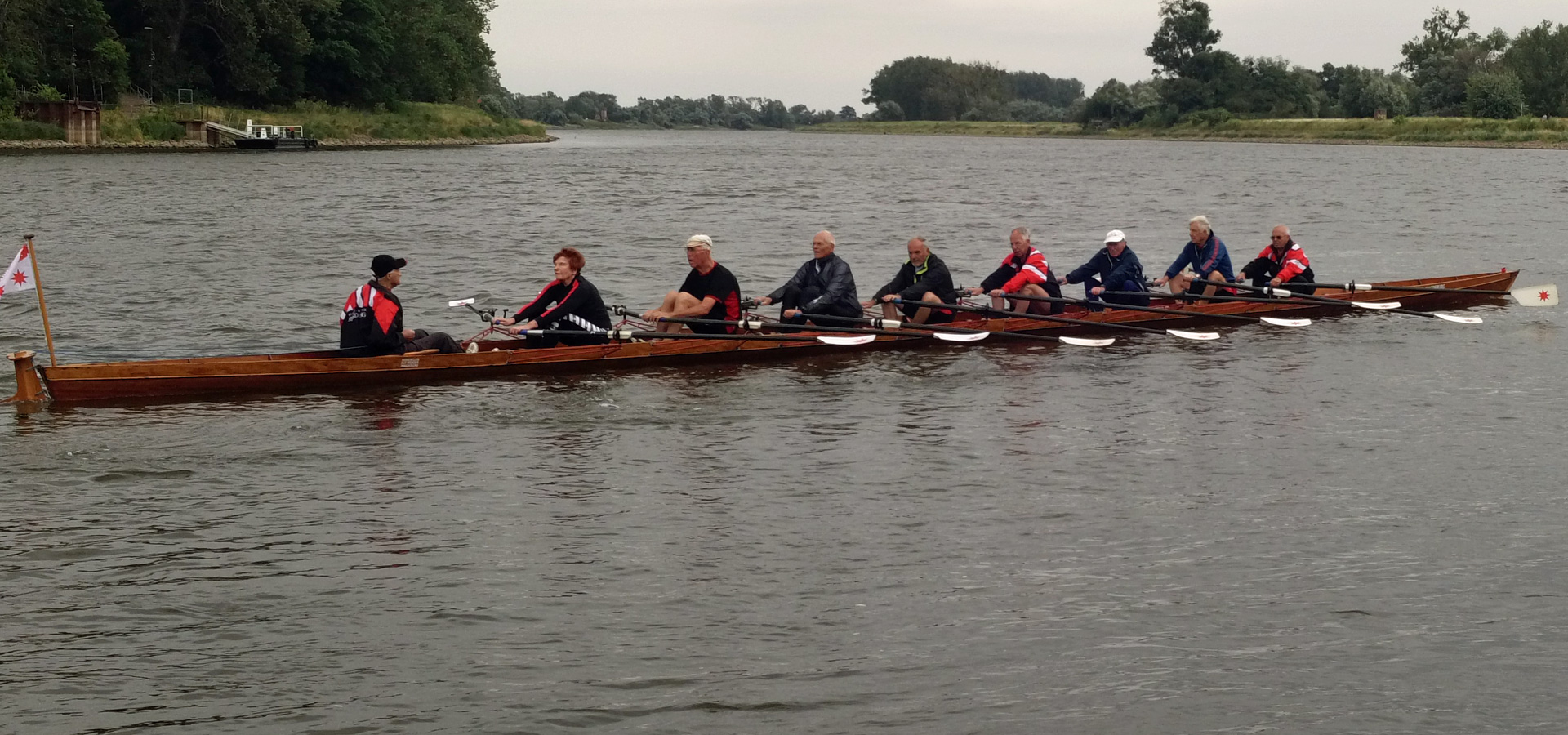 Anlässlich unseres 125-jährigen Bestehens 2012 ging zum damaligen Sommerfest ein Seniorachter aufs Wasser - Gesamtalter der damaligen Mannschaft: 692 Jahre. Zum diesjährigen Sommerfest trommelte Eddie Haseloff - im Mai gerade 90 Jahre alt geworden - wieder einen Seniorachter zusammen, um den damaligen Rekord deutlich zu verbessern. In der Besetzung Stein, Lausch, Coldewey, Pick, Fink, Lingener, Richter, Danker und St. Haseloff kam das Team auf insgesamt 735 Lebensjahre. Die Crew drehte im Gig-Achter "MAGDEBURG" eine ordentliche Runde und ließ es sich danach bei Kaffee und Kuchen gutgehen. Respekt!
